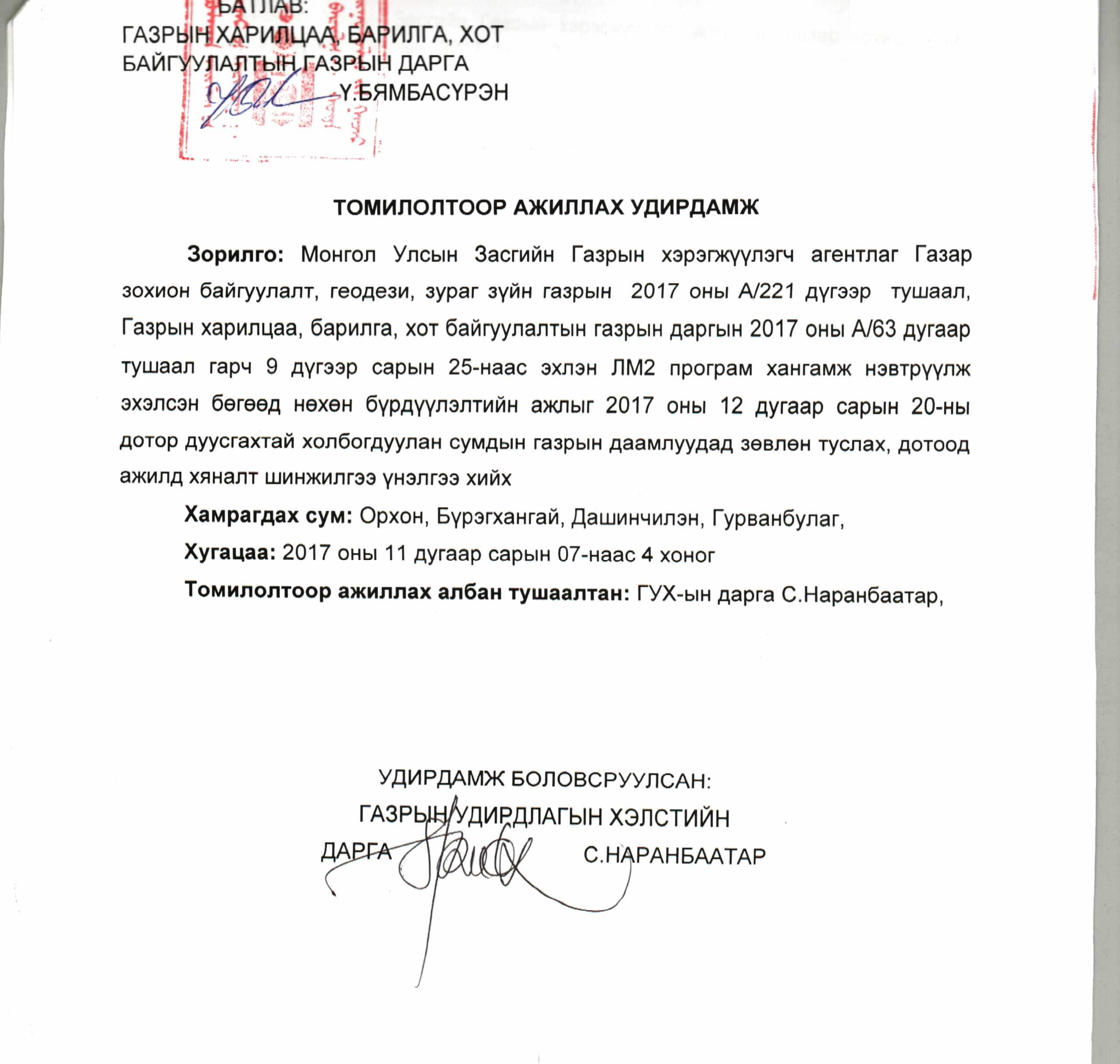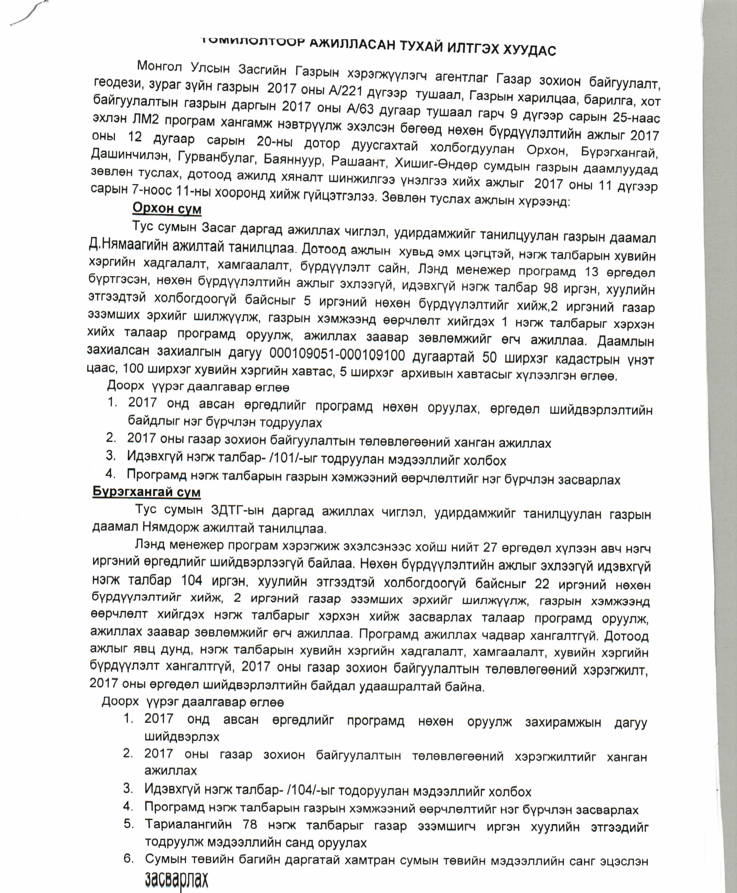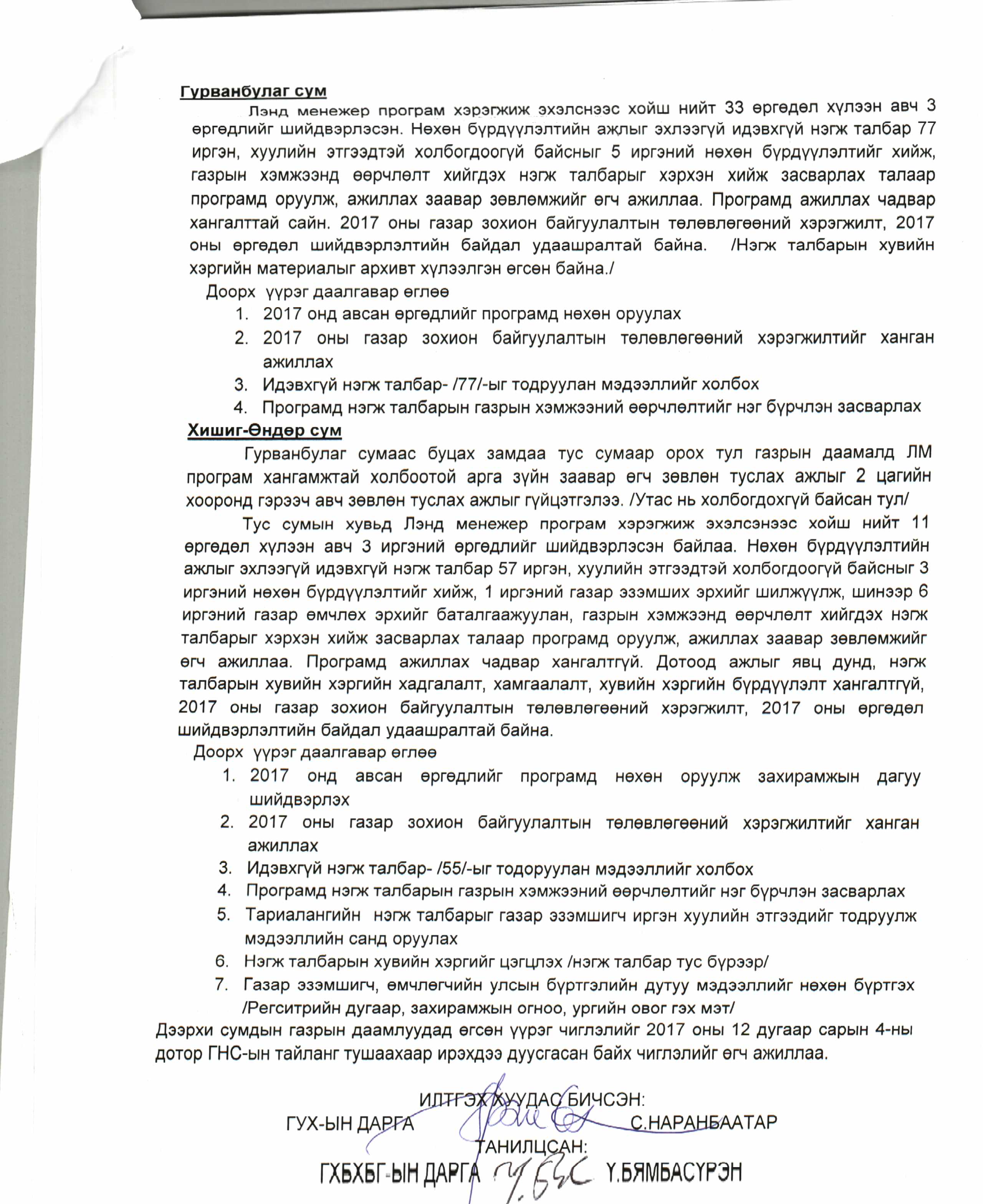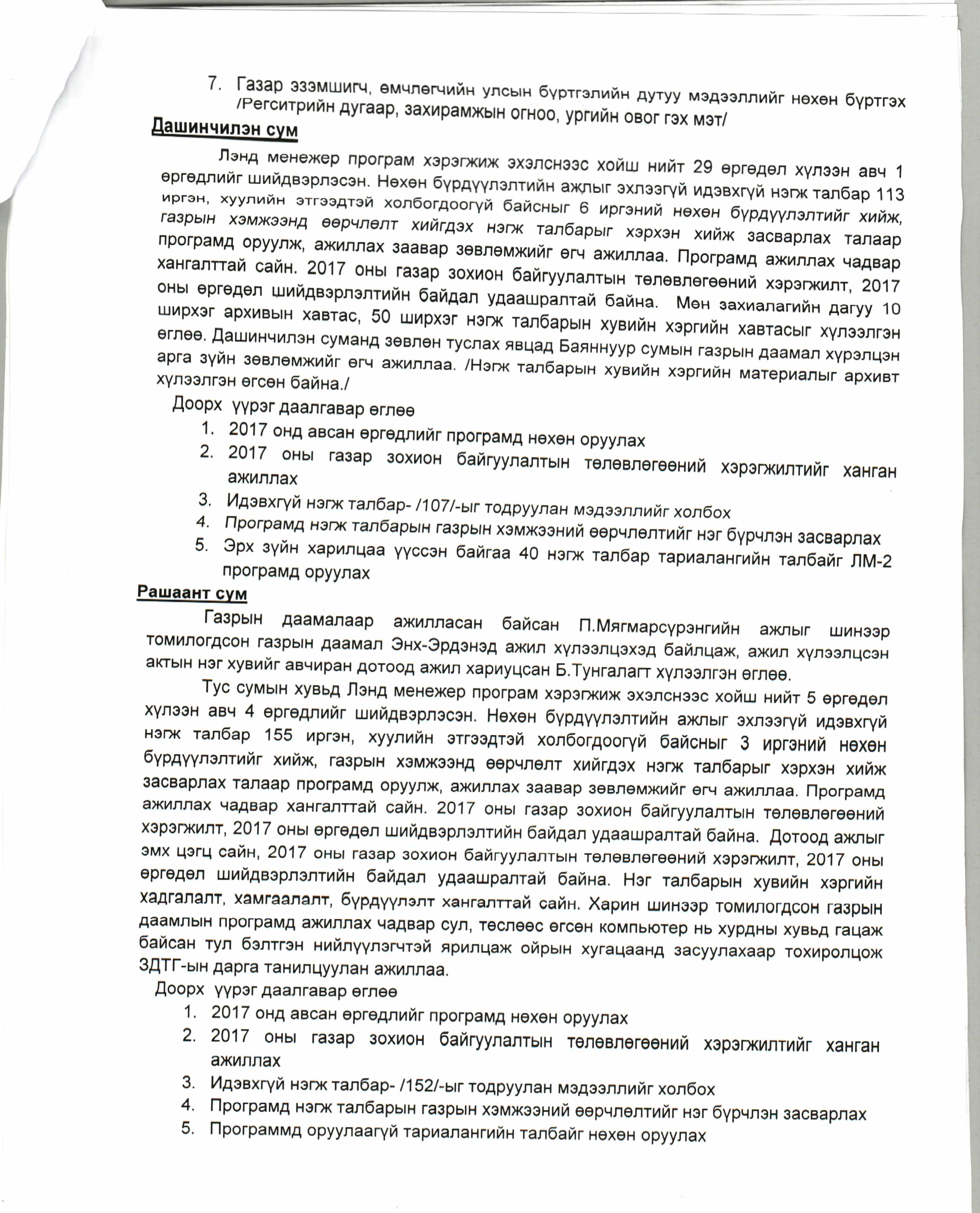 Лэндменежер програмыг сумдын газрын даамлуудад зөвлөх туслах, дотоод ажилт хянлат шинжилгээ хийх