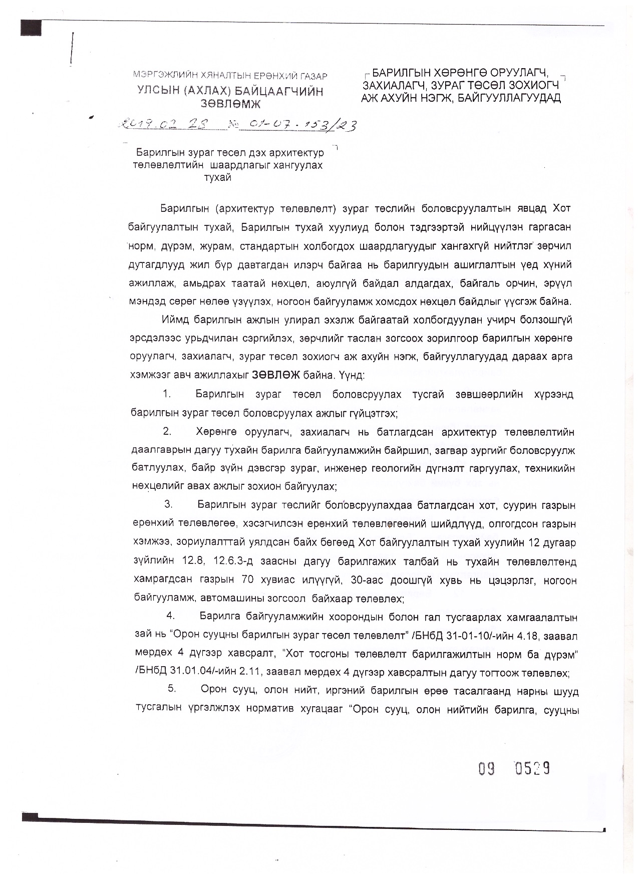 Барилгын зураг төсөл дэх архитектур төлөвлөлтийн шаардлагыг хангуулах тухай