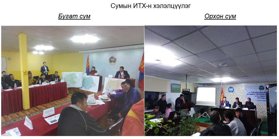 Орхон, Бугат, Хутаг-Өндөр, Тэшиг, Хишиг-Өндөр, Дашинчилэн, Хангал сумын нутаг дэвсгэрийн хөгжлийн төлөвлөгөө боловсруулах ажилд 294.0 сая төгрөг тусгагдагдсны дагуу Сумын нутаг дэвсгэрийн хөгжлийн төлөвлөгөө боловсруулах ажлыг даалгаврыг боловсруулан аймгийн Засаг даргаа батлуулан, зөвлөх үйлчилгээний тендер зарлагдаж мэргэжлийн “Вектор мэп” ХХК шалгарч, аймгийн Засаг даргын 2019 оны А/386 дугаар захирамжийн дагуу нутаг дэвсгэрийн хөгжлийн төлөвлөгөө боловсруулах ажлын гэрээг байгуулан Булган аймгийн 7 сумын нутаг дэвсгэрийн хөгжлийн төлөвлөгөөг ажлын даалгаварт тусгагдсан заалтын дагуу хийж гүйцэтгэсэн. 7 сумын нутаг дэвсгэрийн суурин болон хээрийн судалгаа хийх явц болон багийн ИНХ, сумын ИТХ-р хэлэлцүүлэх үе шатад ГУ-ын хэлтсийн дарга С.Наранбаатартай хамтран хяналтаар ажиллаж, гарч буй саналуудыг тэмдэглэн мэргэжлийн компанитай хамтран ажиллаа. /Багийн ИНХ-с санал хэлэлцүүлэг хийж буй байдал/