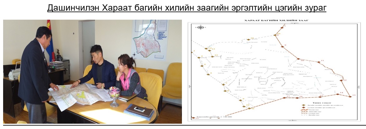 Газар зохион байгуулалтын төлөвлөгөөний мэдээллийн сангийн веб болон десктоп програм хангамжийг боловсруулахтай холбогдуулан сумын төвийн хөгжлийн ерөнхий төлөвлөгөө, хэсэгчилсэн ерөнхий төлөвлөгөө, нутаг дэвсгэрийн хөгжлийн төлөвлөгөөний тоон мэдээлэл болон хавсралт хүснэгтийн дагуу судалгааг гарган ГЗБГЗЗГ-т 01/ 262 дугаар албан тоотоор хүргүүлэв. Газар зохион байгуулалт, геодези, зураг зүйн газраас зохион байгуулсан “Газар зохион байгуулалтын төлөвлөлтийн мэдээллийн сан, цахим системийг турших, хэрэглээнд нэвтрүүлэх” бүсчилсэн сургалтад холбогдох албан тушаалтангуудыг оролцуулж програм хангамжийн хөгжүүлэлтийн талаар тухай бүрд нь санал өгч ажилласан.