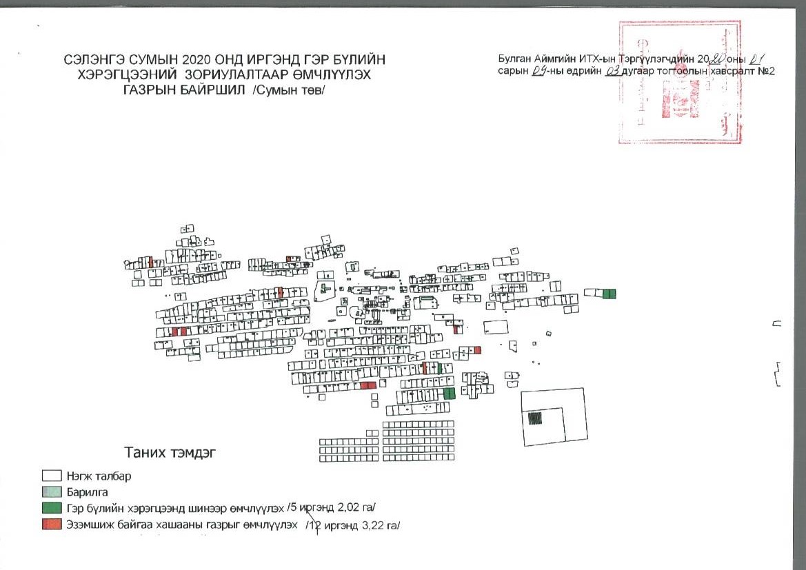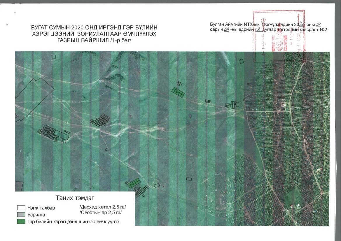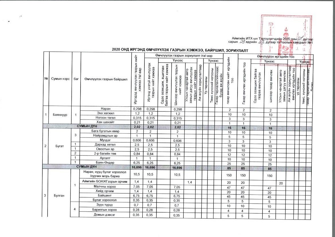2020 онд өмчлүүлэх газрын хэмжээ, байршил зориулалт