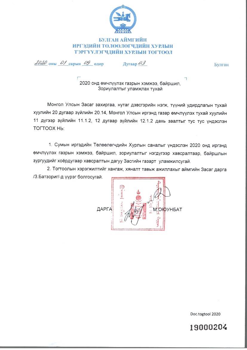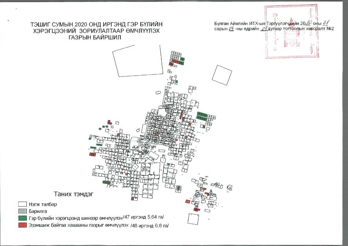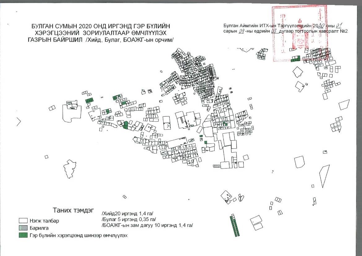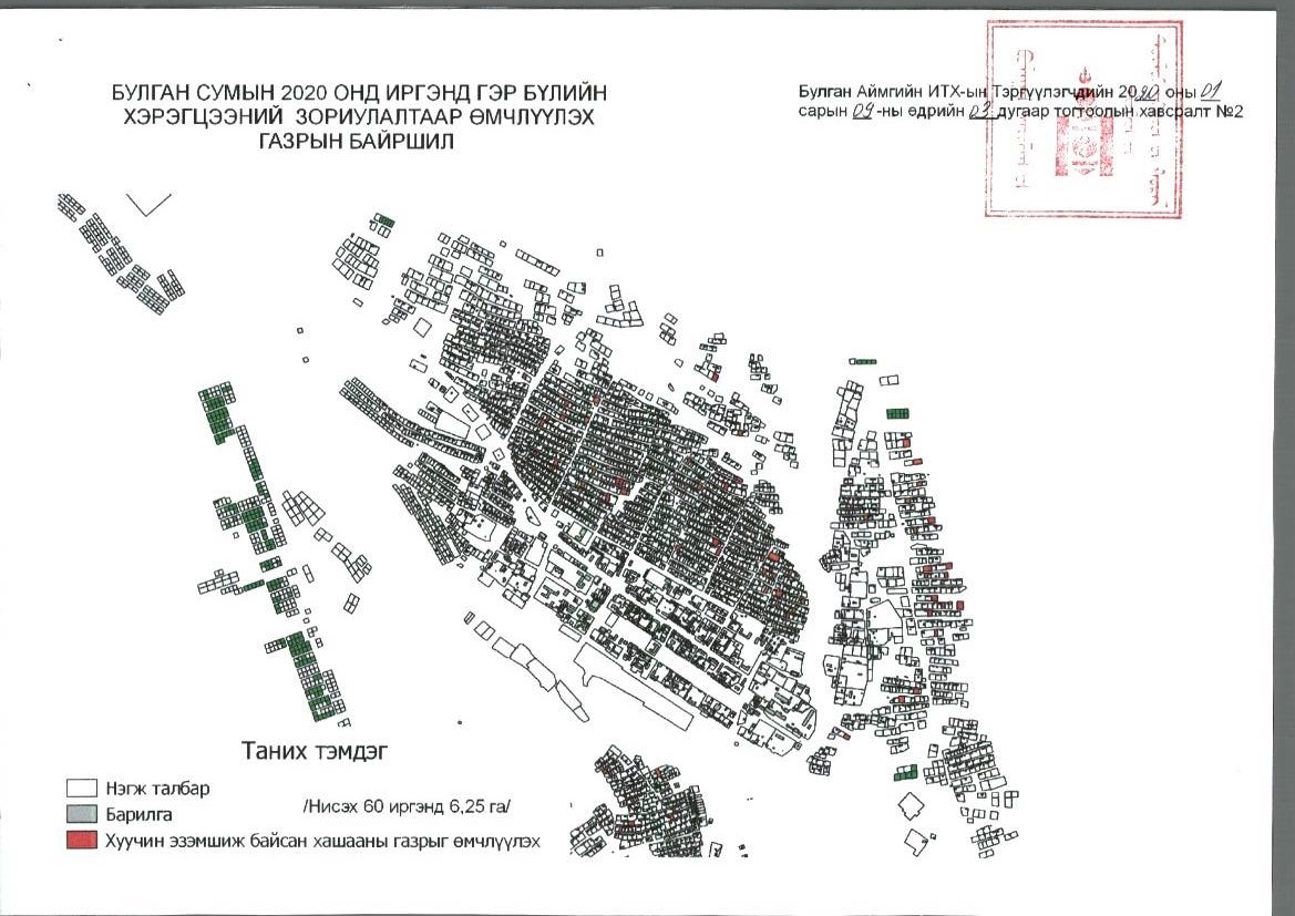 2020 онд өмчлүүлэх газрын хэмжээ, байршил зориулалт